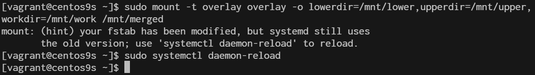 sudo mount -t overlay overlay -o lowerdir=/mnt/lower,upperdir=/mnt/upper,workdir=/mnt/work /mnt/merged